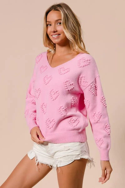 This charming knit top is perfect for Valentine's Day with its heart pompom design and flattering V-neck. Add a touch of whimsy and romance to your outfit with this sweet and playful top. The soft knit fabric provides comfort and style, making it ideal for date night or a casual outing. Embrace the festive spirit with this lovely top that captures the essence of love and celebration. Make a cute and festive statement with this Valentine's Heart Pompom V Neck Knit Top.
