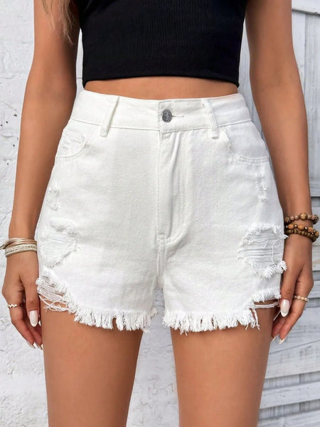 - Features: Distressed, Raw Hem, Buttoned, Pocketed
