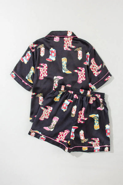 Stay comfortable and stylish in our Printed Button Up Short Sleeve Top and Shorts Lounge Set. Made from soft and breathable fabric, this set is perfect for lounging around the house or running errands in style. The button-up top and elastic waist shorts provide a relaxed fit that is flattering and comfortable.