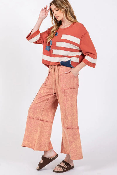 The mineral washed terry knit pants are the epitome of comfort and style! Made from soft and cozy terry knit fabric, they feature a unique mineral-washed finish for a trendy look. The breathable cotton ensures comfort all day long, while the elastic waistband is adjustable for the perfect fit. With both side and back pockets, they offer practicality for your essentials. Perfect for casual lounging or outings, these pants are a versatile addition to your wardrobe. Enjoy effortless style and comfort with this essential piece!