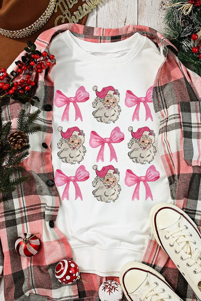Santa & Bow Graphic Long Sleeve Sweatshirt