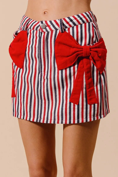 SO ME Contrast Bow Knot Pocket Fourth Of July Denim Skirt