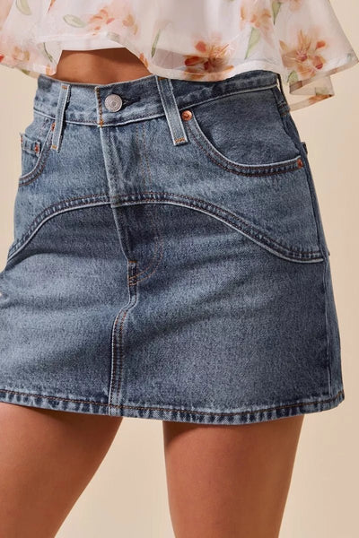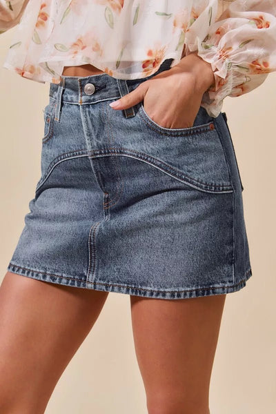 Get ready to rock a casual and stylish look with this Washed Denim Mini Skirt with Pockets. The washed denim gives it a trendy and relaxed vibe. The added pockets provide functionality and a touch of utility to the skirt. Perfect for pairing with your favorite top for an effortless and chic outfit. Whether you're running errands or meeting friends for coffee, this skirt is a versatile option for any occasion. Upgrade your wardrobe with this classic and timeless piece.