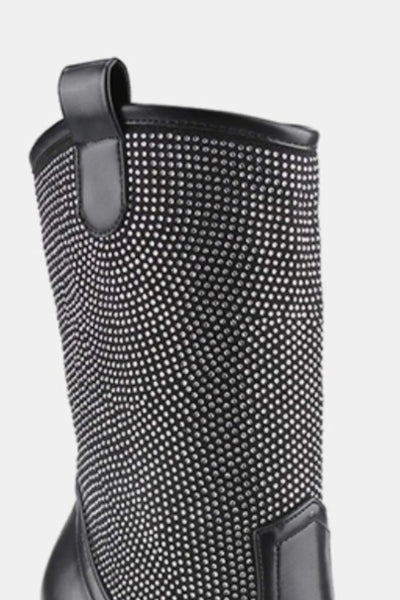 Step out in style with these Chunky Heel Rhinestone Western Cowboy Boots. These boots feature a trendy design with eye-catching rhinestone embellishments that add a touch of glamour to your look. The chunky heel provides both style and comfort, making them perfect for all-day wear. Whether you're heading to a country concert or a night out with friends, these boots will elevate your outfit. Available in a variety of sizes, you can find the perfect fit to complete your Western-inspired ensemble. Make a statement with these fashionable cowboy boots that are sure to turn heads wherever you go!