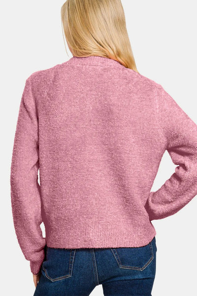 The button-down long sleeve sweater cardigan is a timeless addition to your wardrobe. This versatile piece features a classic button-front design, making it easy to layer over tops or dresses. With long sleeves for warmth and comfort, it's perfect for transitional weather. The cozy knit fabric offers a relaxed fit, ideal for both casual and dressed-up occasions. Pair it with jeans for a laid-back look or with tailored trousers for something more polished. Embrace effortless style and versatility with this essential cardigan!